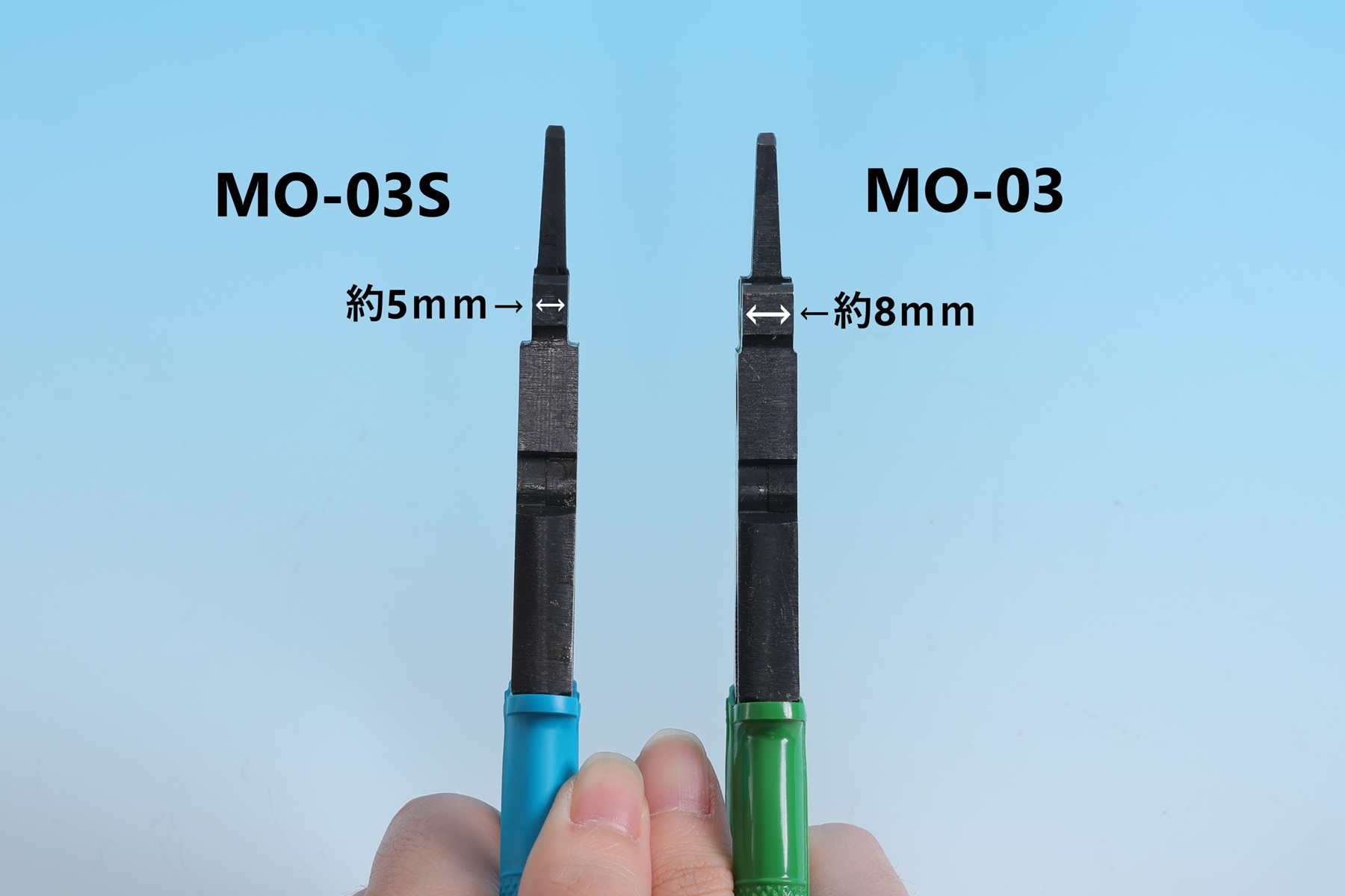 既存のMO-03よりも先端のスパッタ除去部分がさらに薄くなり細口ノズルにも最適に対応可能。